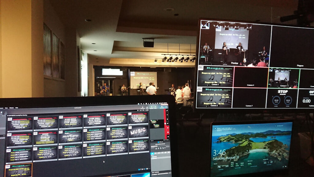 IMPACT Harvest Church 的現場有兩塊屏幕:大屏幕用於向觀衆顯示當前歌詞,小屏幕則用於給臺上的樂手顯示當前歌詞和下一頁的歌詞。兩塊屏幕的比例都是16:9。