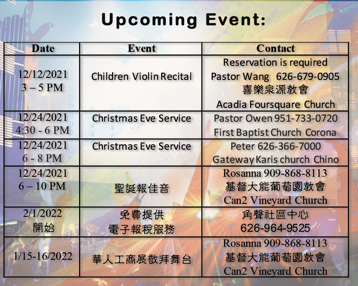 2021 第一届 Upcoming Events 活動預告
